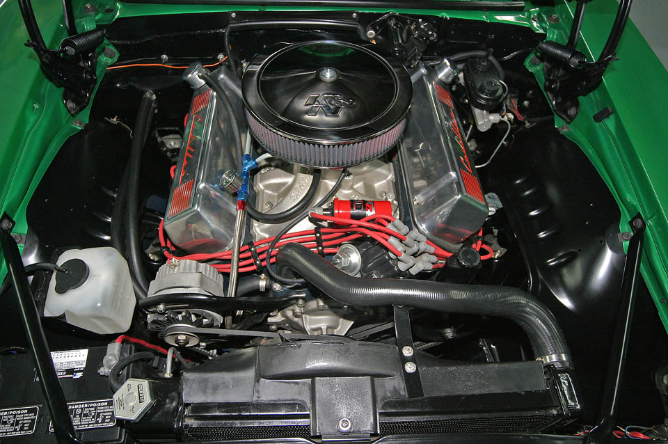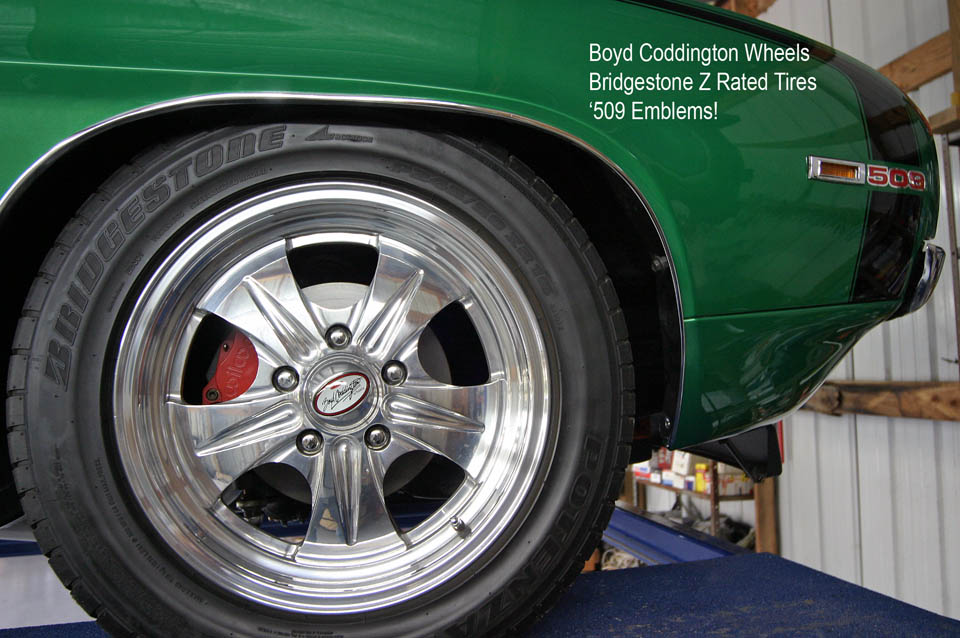Exterior stainless trim package, front spoiler, hideaway headlights and 69 Mustang Mach 1 rear wing, 509 fender decals
