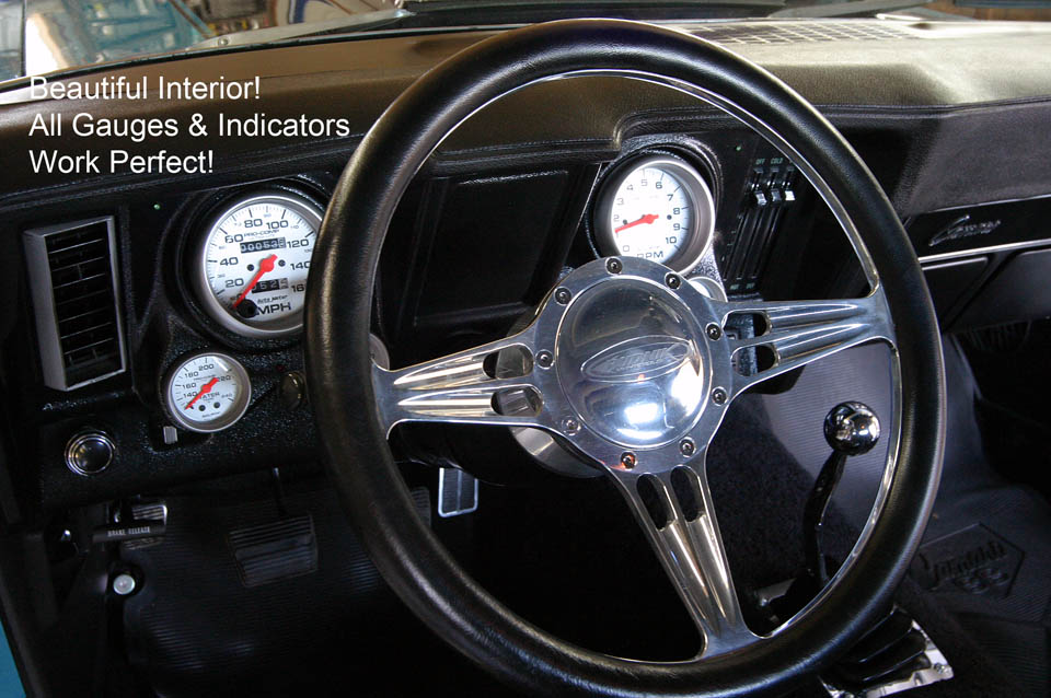 This beautiful 1969 Camaro RS/SS 396 4sp car is ready for that cruise or ProTour! The entire drive train is new, from the origina12 bolt rear end with new 4 series Eaton and Richmond gears; To the completely rebuilt Muncie M21 close ratio transmission and completely rebuilt 68 396 block! The block may not be the original as it has been decked and the pad for the VIN is blank. It is a 3935440 block built in 1968 and is correct for a 396 Camaro. The car was built in January of 69 in Los Angeles, CA. where it stayed until last year. That explains the incredible condition of the body of this car. No rust or accident history and all of the body panels are very straight and believed to be the originals! Trunk & floors are excellent and un-cut! This is about as solid and original body as you could hope to find. The engine was just rebuilt 30 over with Oval closed chamber heads, Demon carb, Hooker ceramic coated headers, new March serpentine belt system, Taylor wires, 434 steel crank, Kevlar clutch, Hayes flywheel, TRW pistons, etc.. all the best stuff and it runs like it! The transmission was completely gone through with most every replaceable part being new. The original 12 bolt rear end was completely rebuilt with new 3.73 gears and series 4 Eaton. Body is incredibly straight with no sign of filler anywhere. All new Poly bushings throughout including complete front end and body mount bushings. Hotchkiss front springs and sway bar. Vented and drilled power front disc brakes stop this car on a dime and includes new heavy duty calipers. Beautiful all new interior with Comfort weave seats. Complete ProComp in-dash gauge package with all new wiring and done right. All of the gauges work perfect as do the led indicator lights for signals and warnings. And for the icing on the cake, this car sounds incredible with the 2.5" FlowMaster aluminized exhaust system finished with beautiful stainless steel tips. It really has that incredible muscle car sound. This car absolutely runs and drives as good as it looks. And there is just over 100 miles on the entire rebuilt drive train from rear end to the engine. This beautiful car is ready to enjoy on those weekend cruises and car shows. I would not hesitate to drive this car anywhere. It starts and runs perfect and idles great and does not run hot. This car also has an incredible sound system with CD player, 4 hidden speakers (No holes were cut for the speakers) and a top of the line Rockford Fosgate amp hidden in the back.
